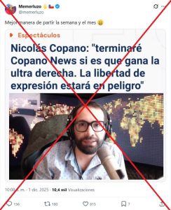 Es falso que Nicolás Copano anunció el fin de “Copano News” si es que gana la ultraderecha