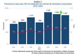 Según el Informe Nacional de Víctimas de Homicidios Consumados en Chile 2024, durante ese año hubo 1.207 asesinados en el país, cifra que ha disminuido respecto a los dos años anteriores. En 2023 el número fue de 1.249 y en 2022 de 1.330. Y según el Ministerio de Seguridad Pública, durante los primeros seis meses de 2025 se registraron 511 víctimas de homicidio consumado.