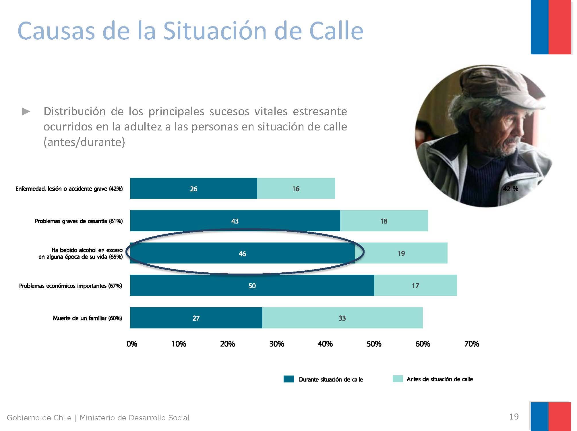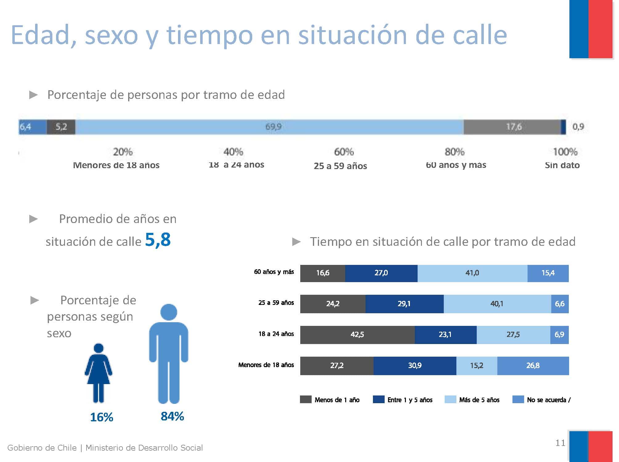 A diferencia de la historia de Carla, hace cinco años predominaban los hombres (84%), con un promedio de seis años en la calle, con consumo problemático de alcohol (41,5%), motivados principalmente por conflictos con sus familias (36,9%), viviendo en “rucos” (instalaciones construidas con plásticos y cartones), que se distribuían de manera dispar en los grandes centros urbanos.