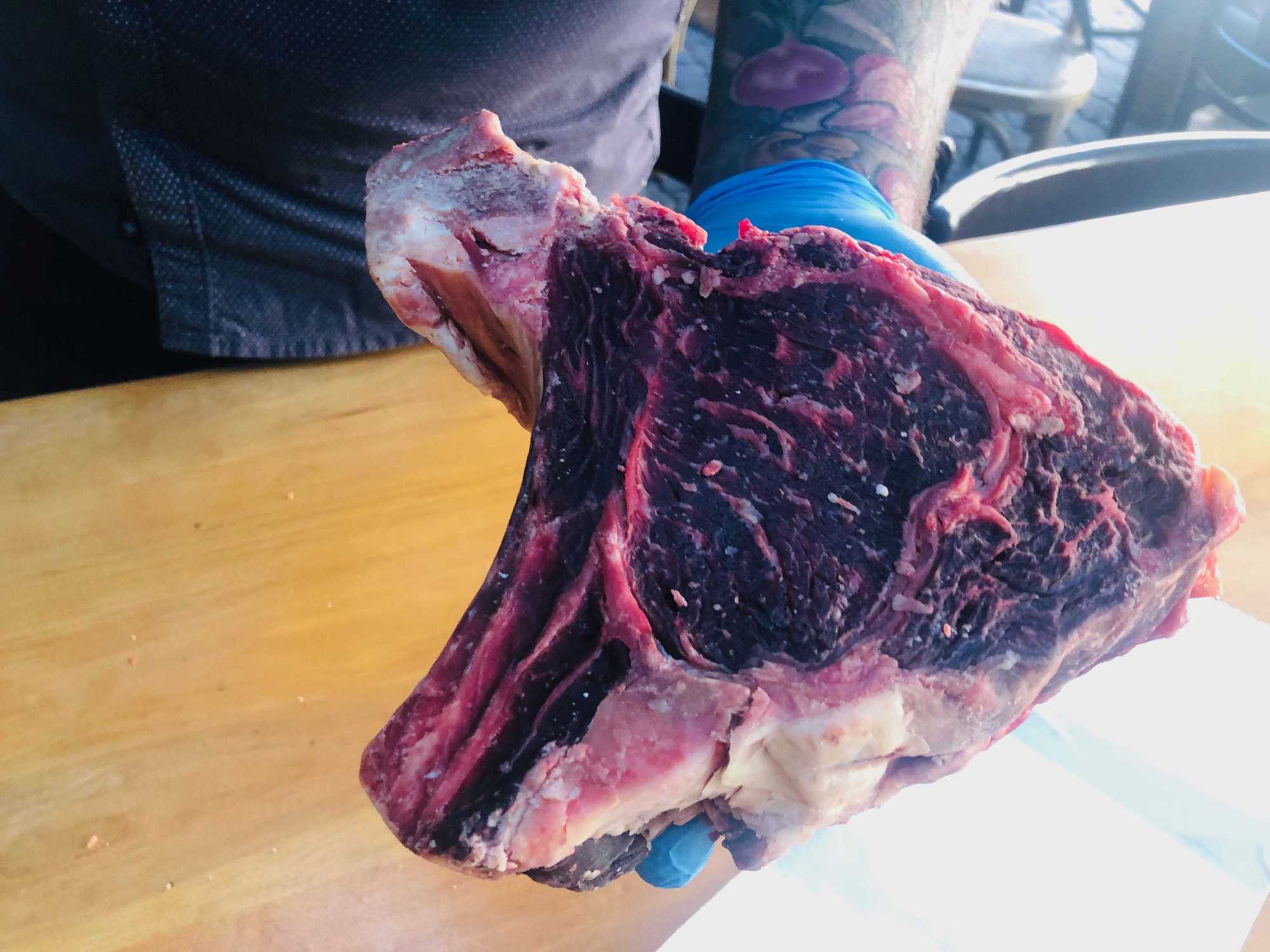 El camino para lograr esta transformación es lento. Se conoce como proceso de maduración que comienza posterior a la faenación, donde el animal puede estar hasta 90 días reposando en una cámara de frío, relata Sierra. Durante ese tiempo se libera lo que se conoce como ácido láctico, enzima que va rompiendo los tejidos de la carne, que permite que este se vaya ablandando hasta quedar óptimo para el consumo. Así, se logra maximizar la utilización del producto: “A un animal que antes se tiraba a la basura, que no se comía o se hacía hamburguesa, le estamos dando un proceso para transformarlo en premium y evitamos estar comiendo animales que vienen de fundos gigantes que quizás pasaron por mala vida”, afirma el cocinero.