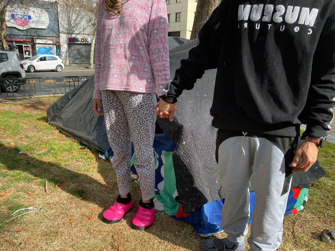 Sairí conoció el peligro de vivir en la calle. Cada noche era una tensión distinta, dice: “A veces pasaban borrachos e iban con palos a las carpas o hasta balazos, a más de uno le dieron”. Además ha sentido la discriminación. Afirma que el hecho de vivir en las calles siendo extranjera aumenta los malos tratos: “Te denigran más, te tratan más mal. Cuando llegué, alguien me dijo: ‘No sé qué vienes a estar molestando en mi país’, metiéndose con los niños y ellos no tienen la culpa”.