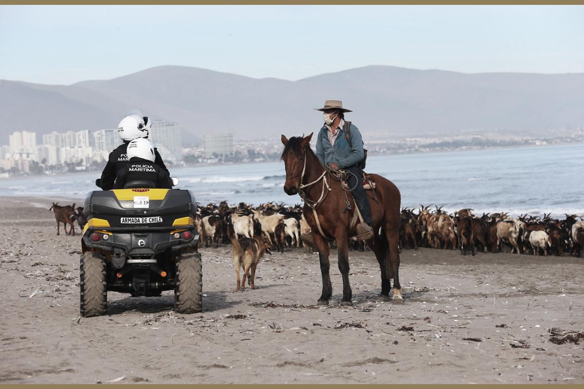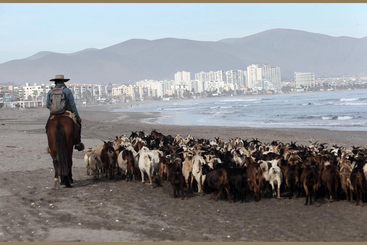 Eran las 9 de la mañana del sábado 27 de junio y la temperatura no superaba los 16°C en Caleta San Pedro (Región de Coquimbo). Pese al frío, la playa de esa localidad, que por esas fechas suele asemejarse más bien a un desierto, estaba llena de cabras. Eran cerca de 250. Al frente del rebaño, el criancero Patricio Rojas (44 años) iniciaba a caballo una travesía de arreo de más de 20 kilómetros a través de las playas de Coquimbo, en busca de alimento y agua para sus ya maltrechos animales.