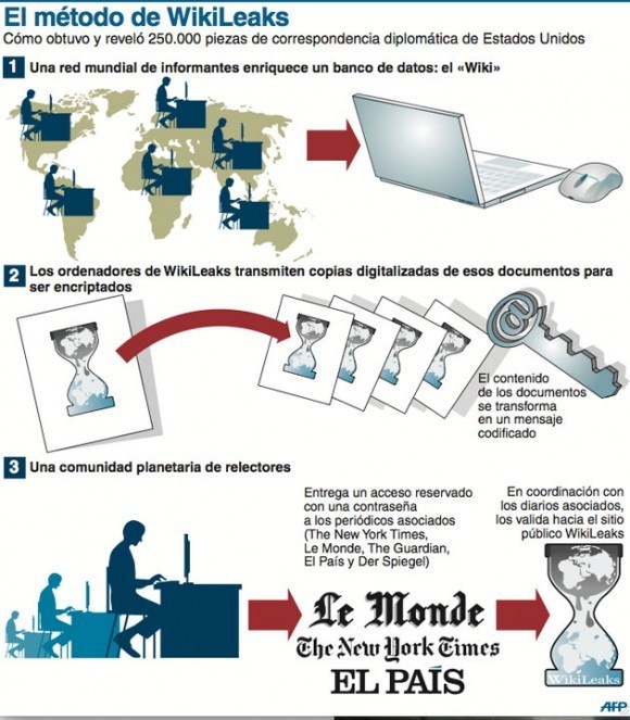 Wikileaks es una organización sin fines de lucro creada en el año 2006 por su actual director: Julian Assange. El sitio publica informes y documentos de fuentes anónimas sobre los movimientos de los grandes poderes fácticos, que son de interés público. Según el medio, hasta la fecha cuentan con una base de datos compuesta por 10 millones de documentos. Posee distintas alianzas con grandes empresas mediáticas de relevancia mundial como The Guardian (Reino Unido), Der Spiegel (Alemania), The New York Times (Estados Unidos), Le Monde (Francia), El País (España), Al Jazeera (Qatar) y el Bureau of Investigative Journalism (Reino Unido). Estos medios han sido los principales canales fuera de la web que ha utilizado Wikileaks para hacerse más visible ante la población mundial.