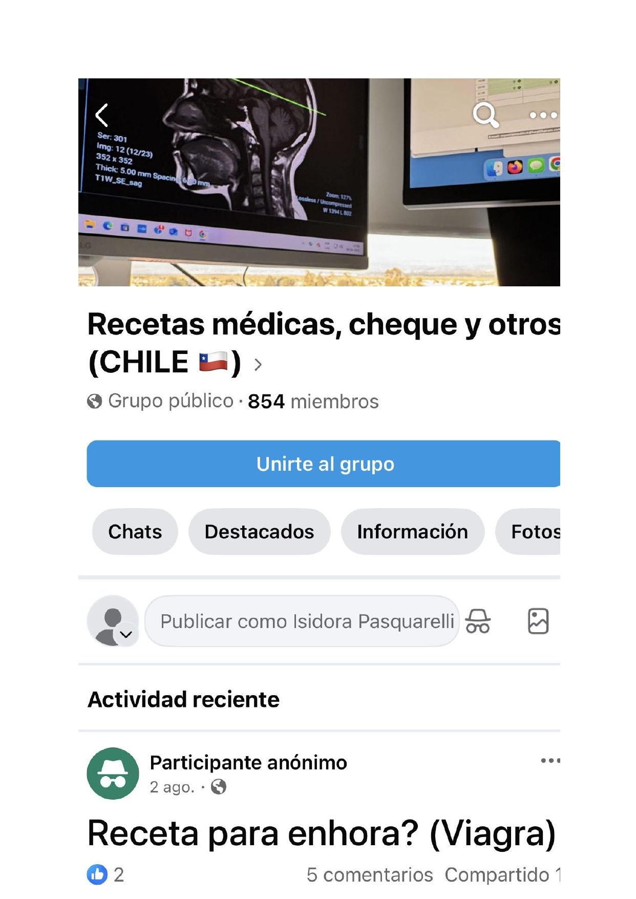 El boom del comercio clandestino de medicamentos con y sin receta se expande en redes sociales como Facebook, Telegram y WhatsApp. En Chile, solo en Facebook hay al menos diez grupos activos con más de mil miembros, donde se ofrecen antidepresivos, ansiolíticos y estabilizadores del ánimo con entrega inmediata y sin control médico. Las transacciones se concretan a diario en estaciones de Metro y puntos públicos, en un mercado informal que ya preocupa a las autoridades sanitarias.