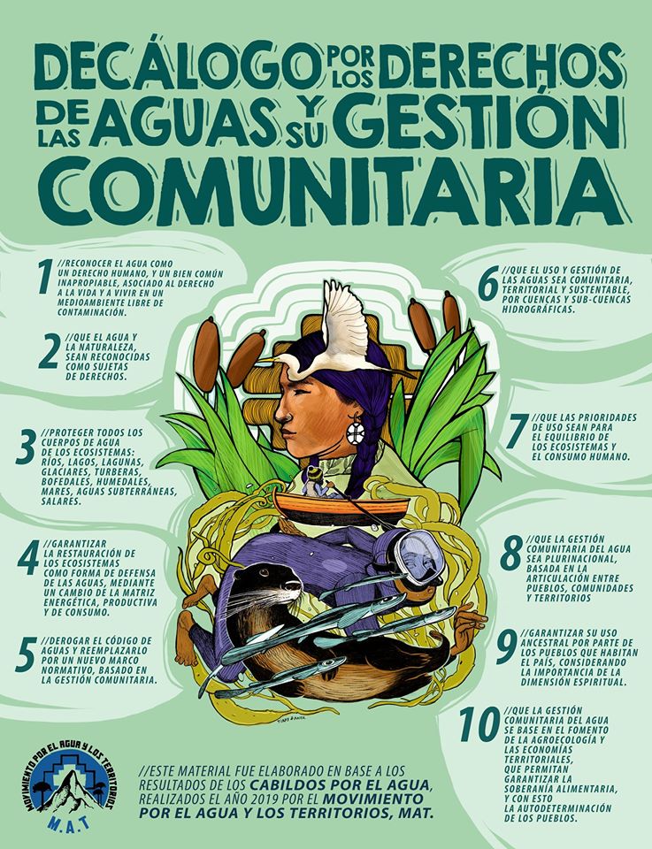 El 22 de abril pasado, Día Mundial de la Tierra, la agrupación por el Agua y los Territorios publicó un decálogo por el derecho al agua y su gestión comunitaria, el que se realizó a partir de 60 cabildos desde Arica a Magallanes.