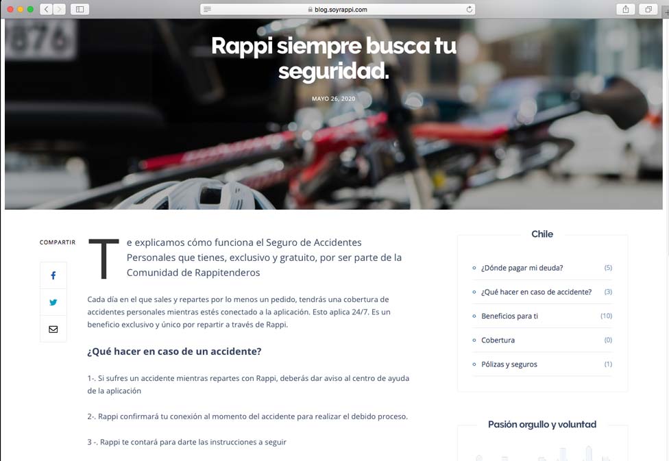 Captura realizada del blog de Rappi el 19 de agosto del 2020.