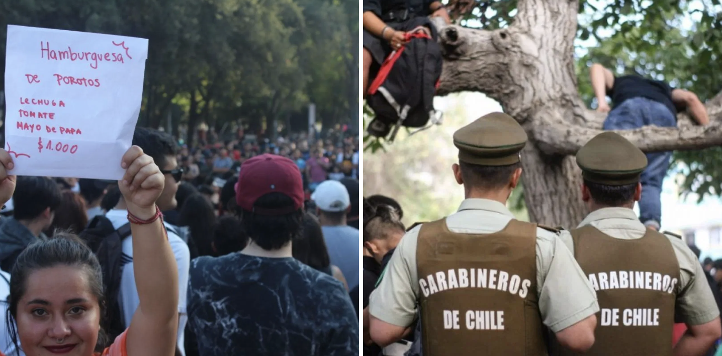 Vendedora de comida. Fotografía de Bryan Vega. Carabineros. Fotografía de Joaquín Morgado.