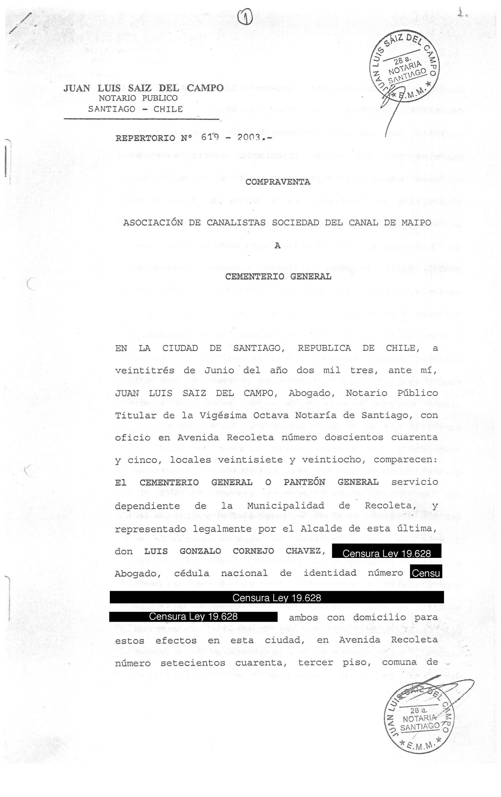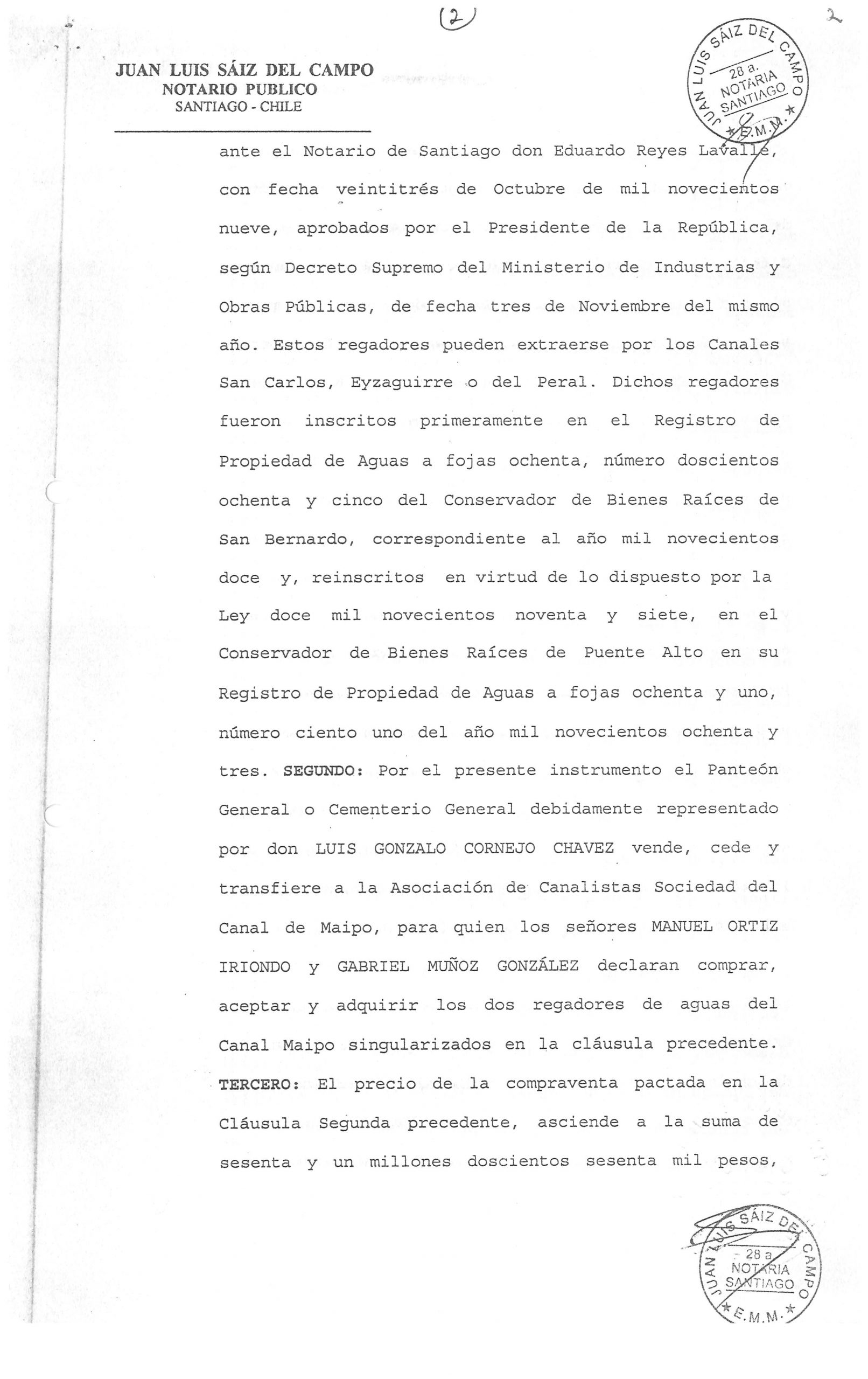 CONTRATO DE COMPRAVENTA DE LOS DERECHOS DE AGUA DEL CEMENTERIO GENERAL