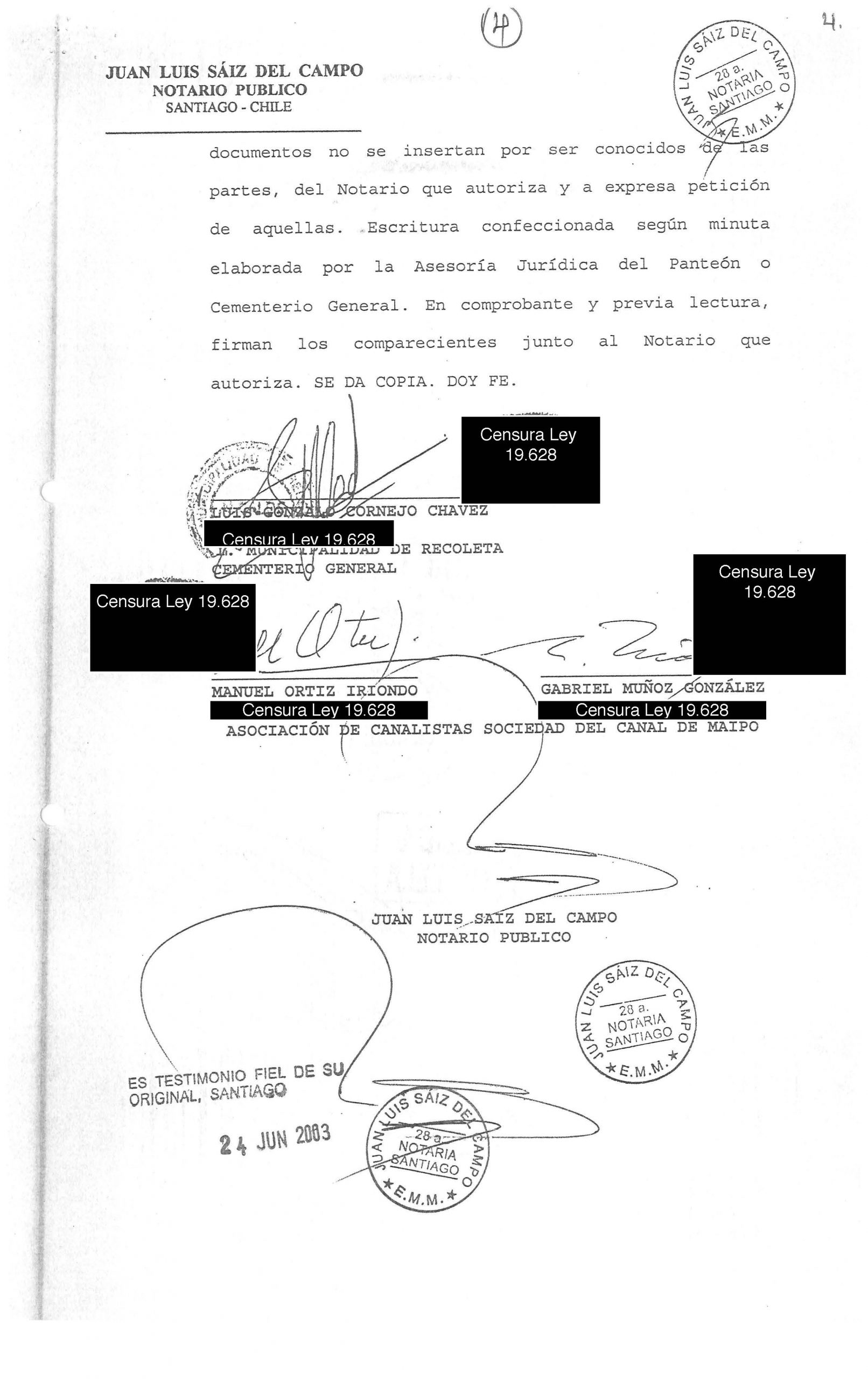Cuando Sol Letelier, militante de la UDI, asumió como alcaldesa el 2008 en reemplazo de Gonzalo Cornejo, la Sociedad del Canal de Maipo solicitó a la municipalidad realizar un Concejo Municipal para poder inscribir jurídicamente los derechos de aprovechamiento de agua. El motivo fue que, en 2003, el contrato fue rechazado por el Conservador de Bienes Raíces de Puente Alto, ya que la inscripción estaba a nombre de Panteón General y no de Cementerio General.
